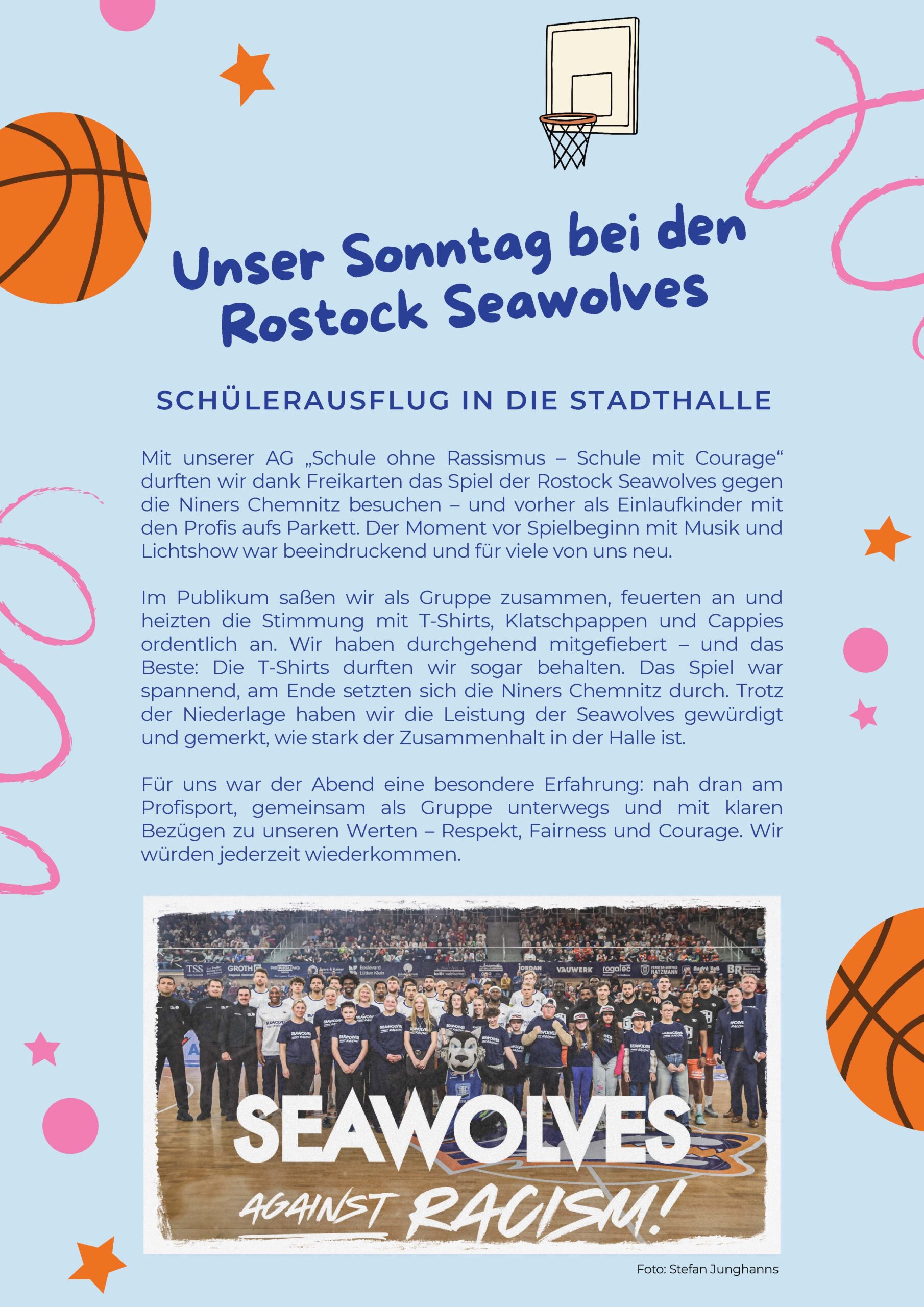 Wir, die GodeWind Schule Rostock, sind Teil des Netzwerkes „Schule ohne Rassismus – Schule mit Courage“. Am letzten Schultag im Schuljahr 2024/2025 wurde uns im feierlichen Rahmen der Titel „Schule ohne Rassismus – Schule mit Courage“ verliehen. Mit dabei waren auch unsere Paten - die Rostock Seawolves, ein Verein mit einer starken Botschaft für Vielfalt und Toleranz. Vielen Dank für die tolle Unterstützung. Fotos